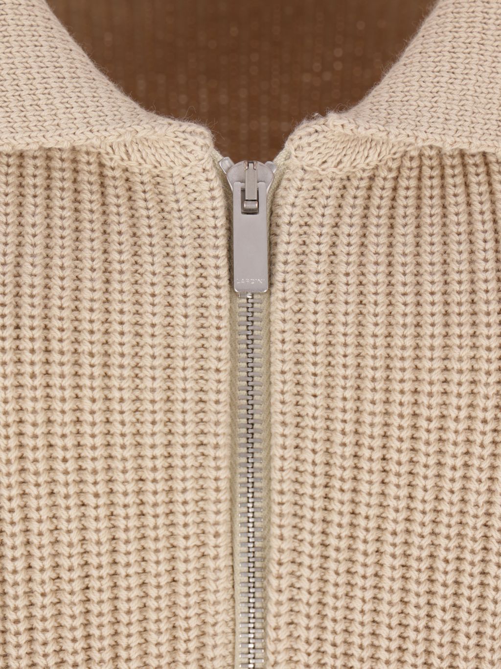 라르디니 베이지 하프 집업 리브드 코튼 니트