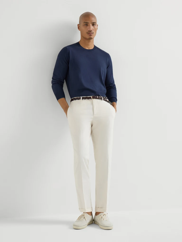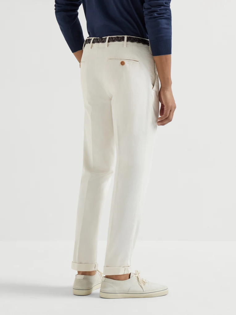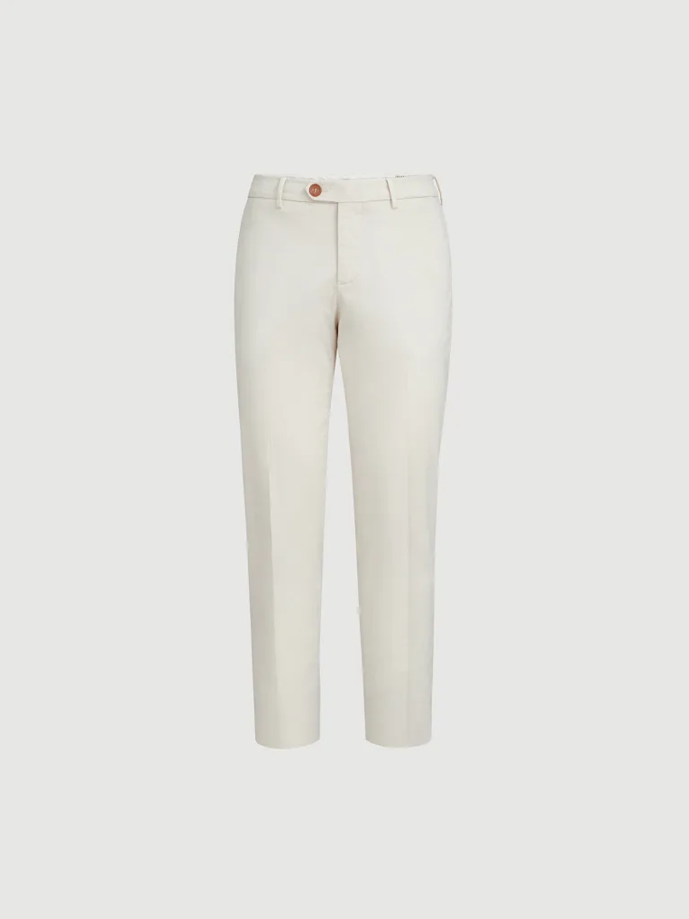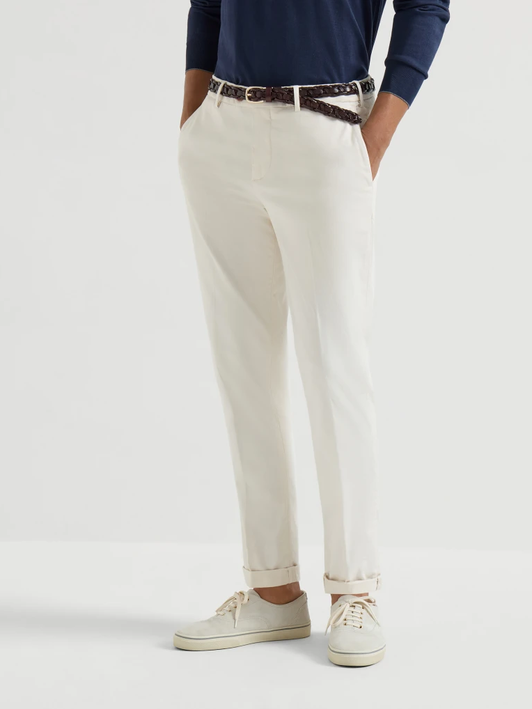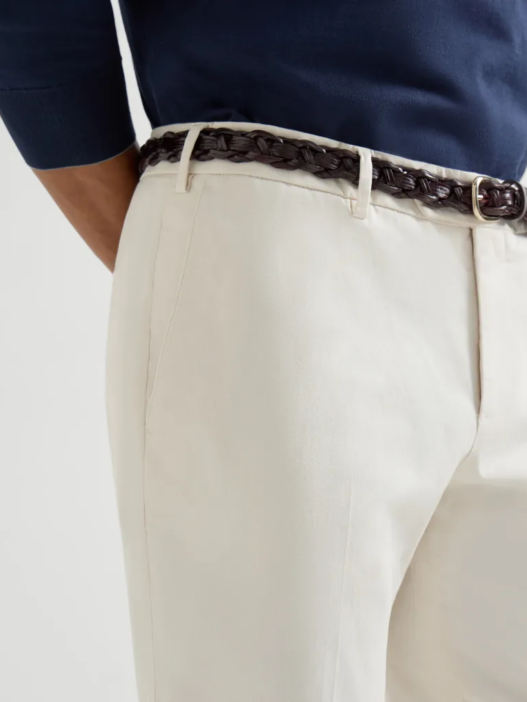 브루넬로 쿠치넬리 M289LI1770 오프 화이트 코튼 컴포트 가바딘 이탈리안 핏 팬츠
