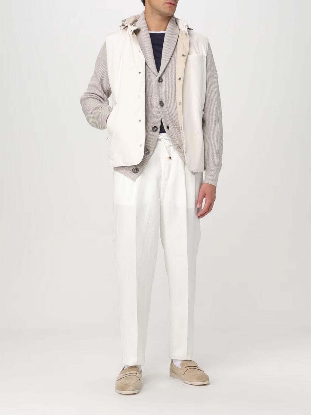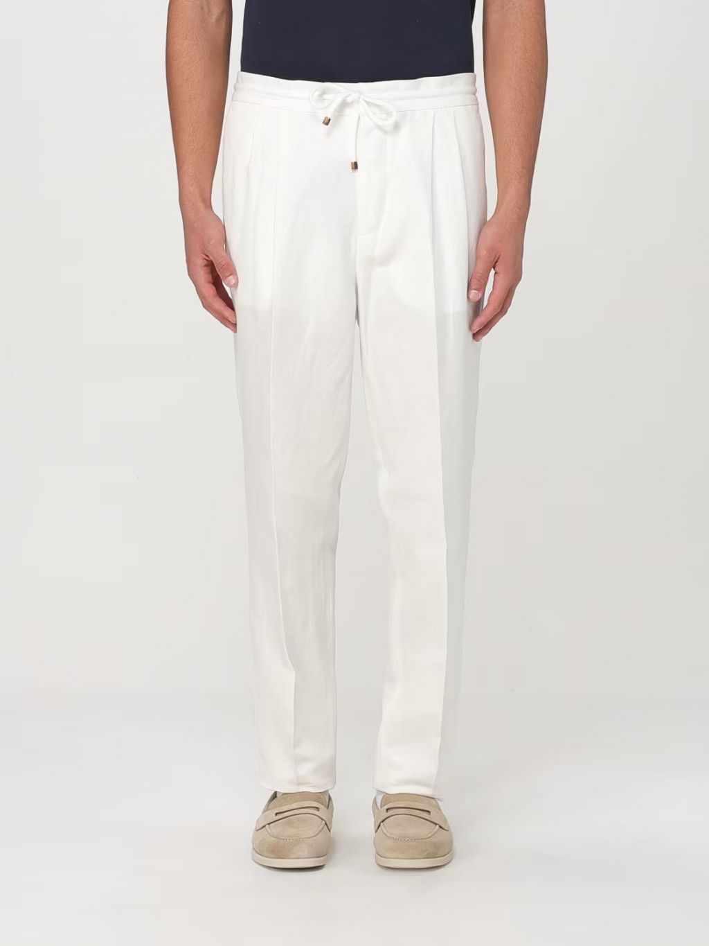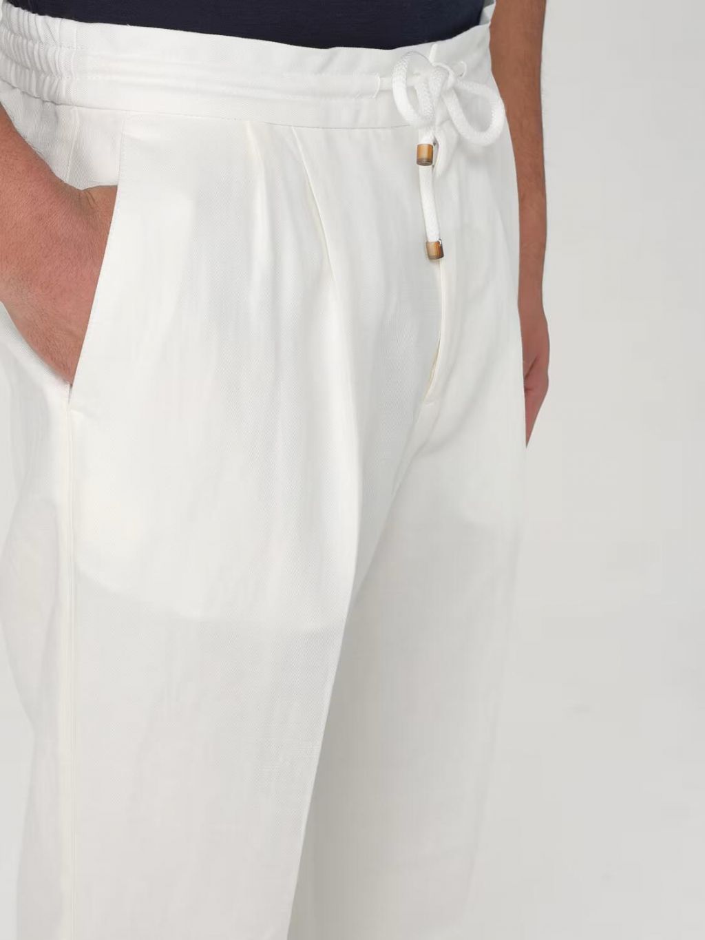 브루넬로 쿠치넬리 MH255E1710 스노우 린넨 코튼 드로스트링 드릴 팬츠