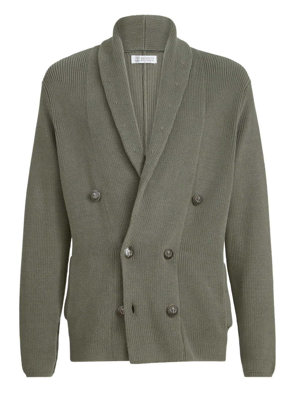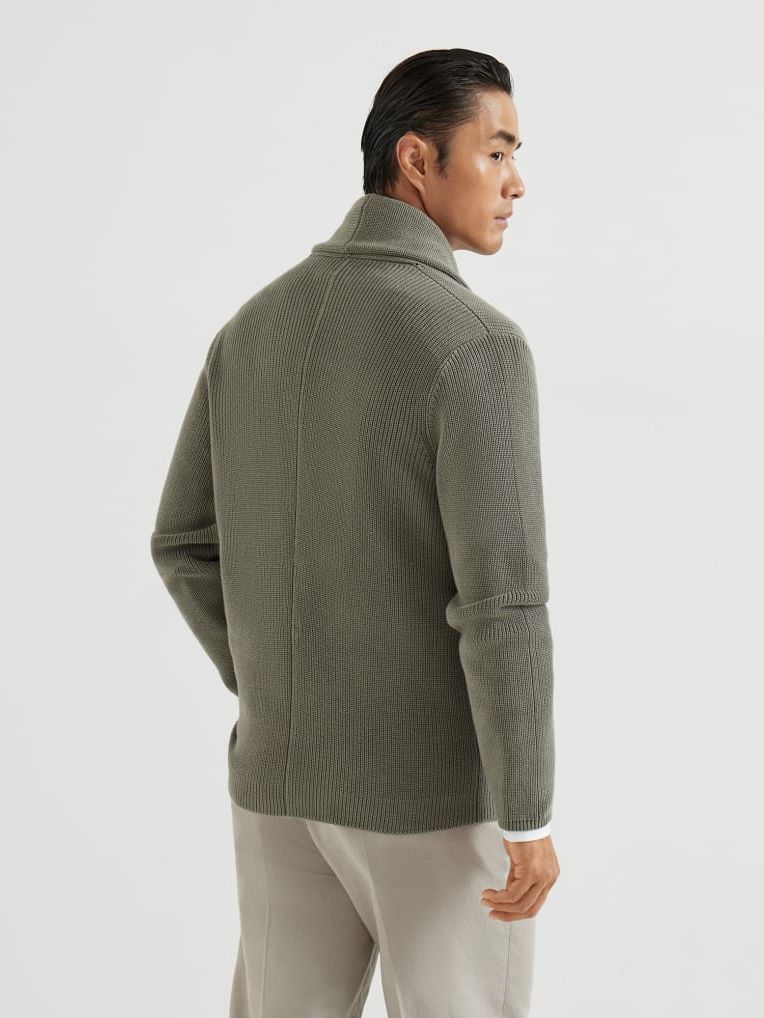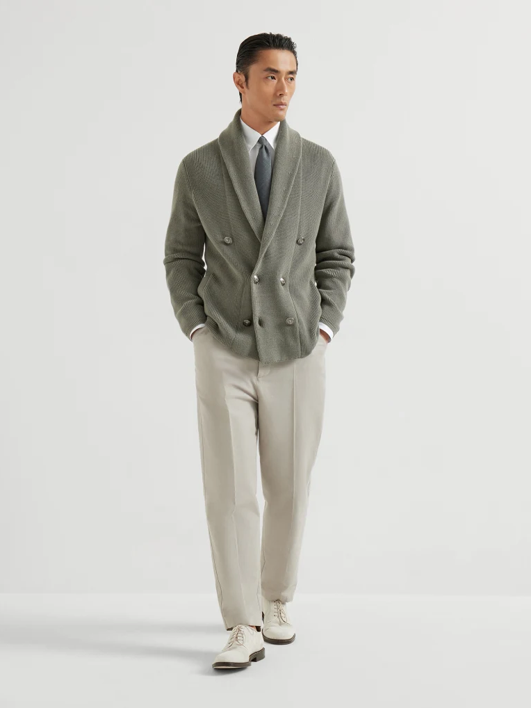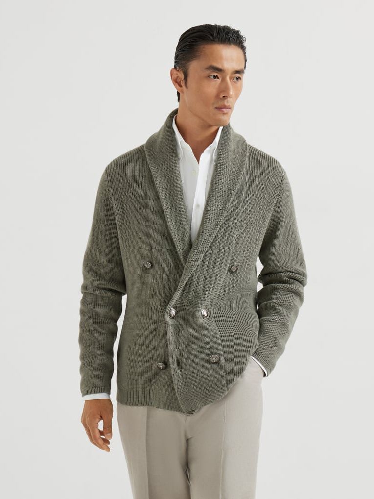 브루넬로 쿠치넬리 M2873346 카키 코튼 하프 잉글리시 립 메탈 버튼 가디건