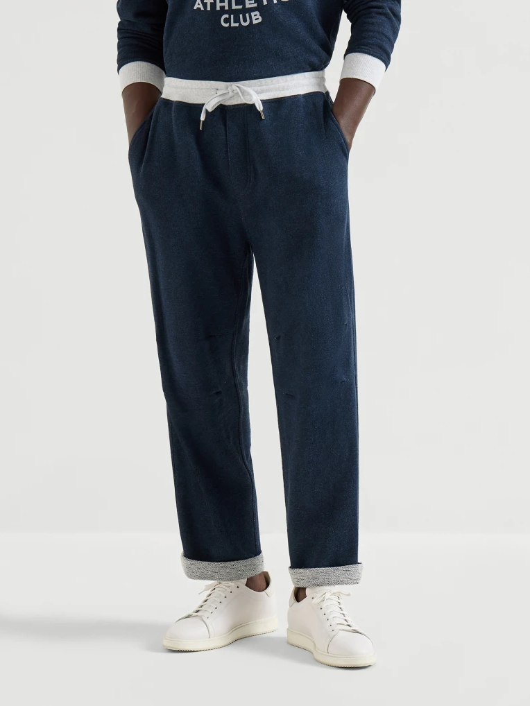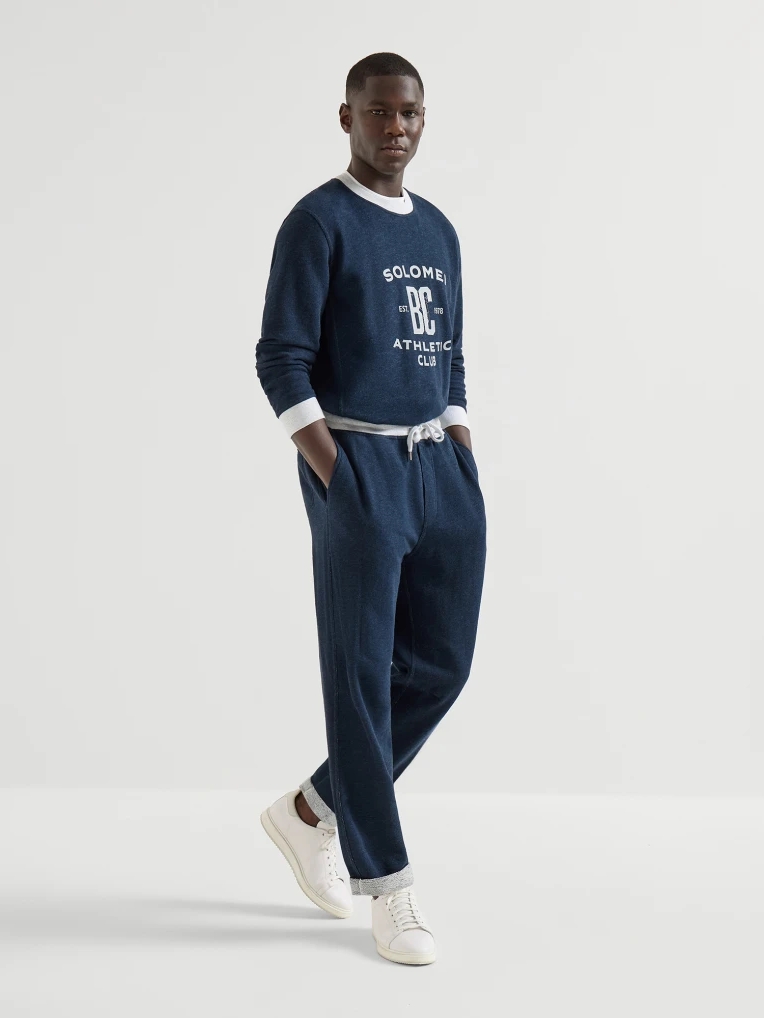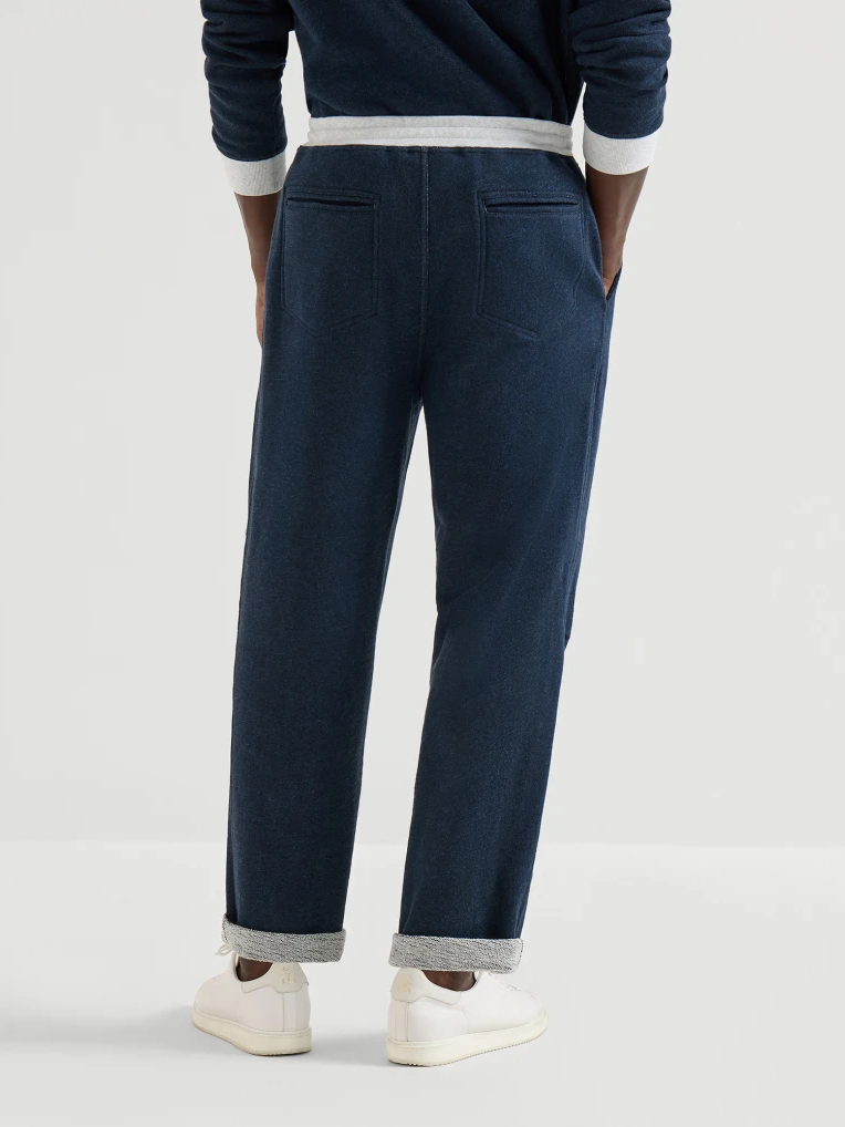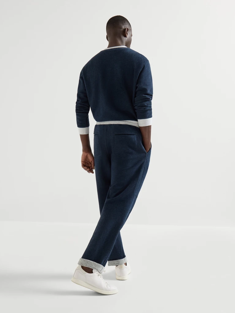 브루넬로 쿠치넬리 MR8313381G 네이비 코튼 리넨 멜란지 프렌치 테리 트라우저