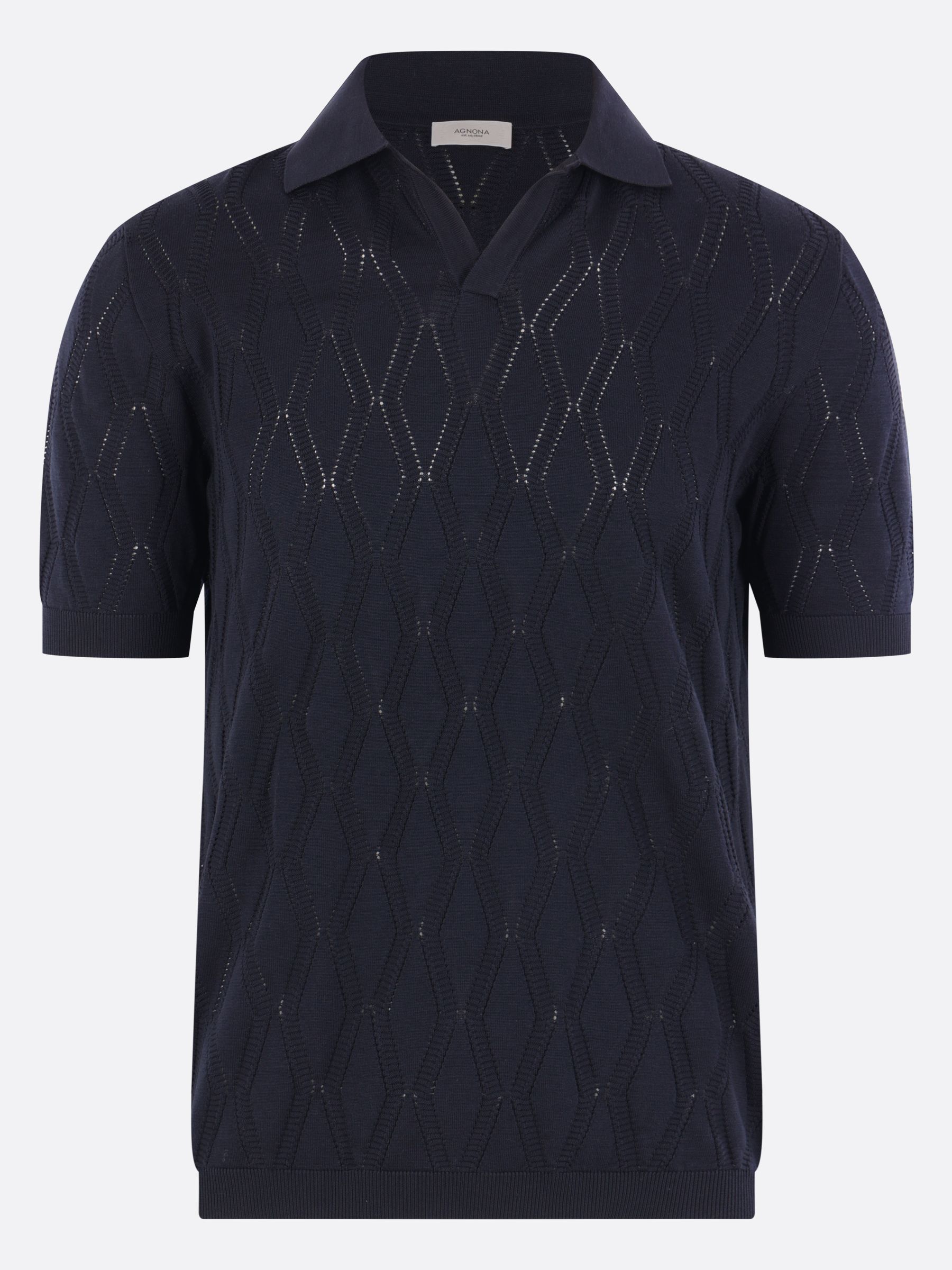 아뇨나 K311U857Q1412 네이비 코튼 실크 다이아몬드 패턴 폴로 셔츠