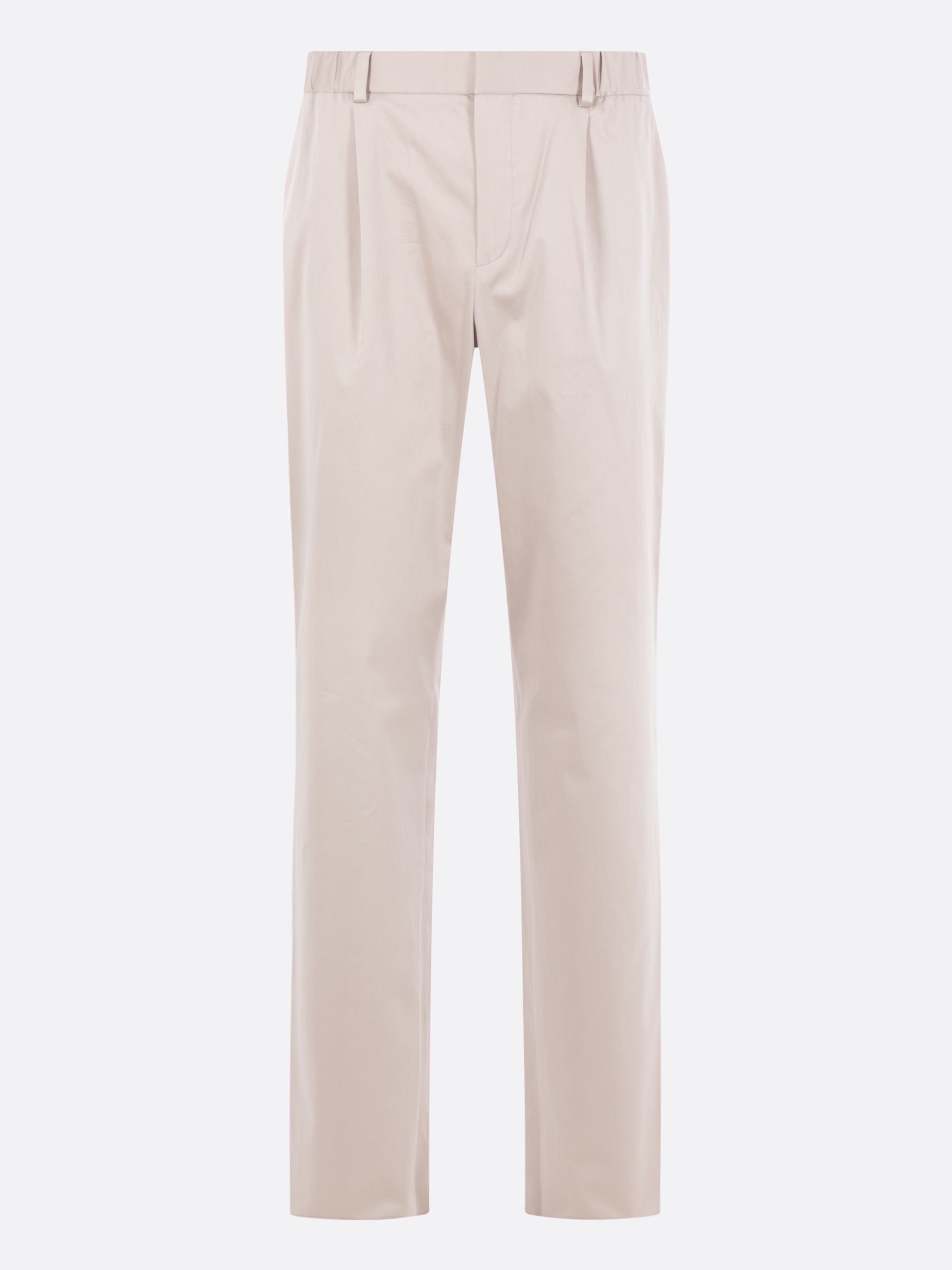따뜻한 회색 스트레치 코튼 소재로 제작된 아그노나 치노 팬츠입니다. 신축성 있는 허리 밴드, 앞면 후크앤버튼 및 지퍼 여밈, 벨트 루프, 앞면 주름, 중앙 주름 디테일이 있으며 안감은 없습니다.