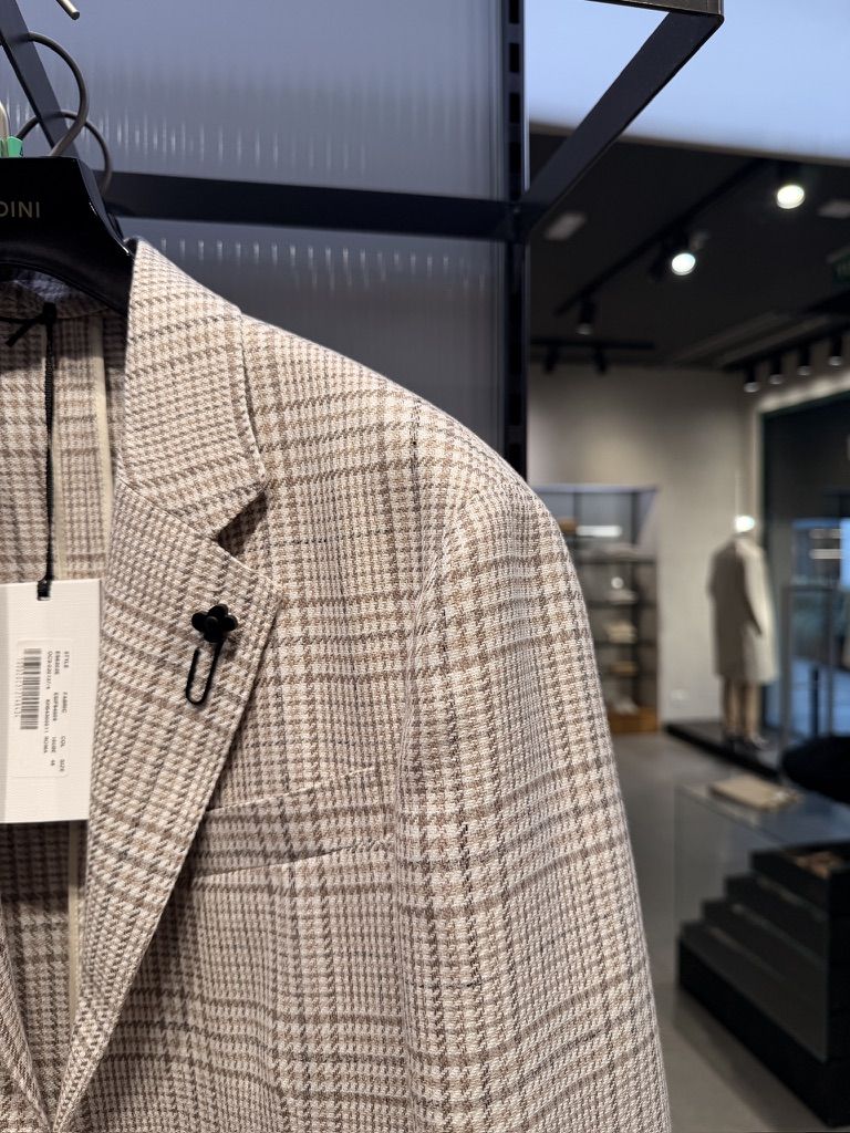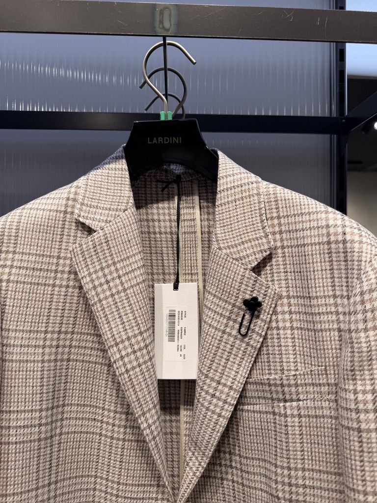 라르디니 라이트 베이지 프린스오브웨일즈 코튼 린넨 블렌드 자켓