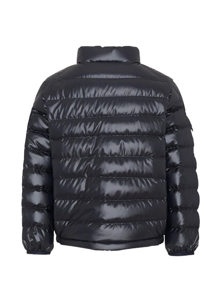 • 블루 퀼팅 하이넥 지퍼 패스닝 로고 패치 캥거루 포켓