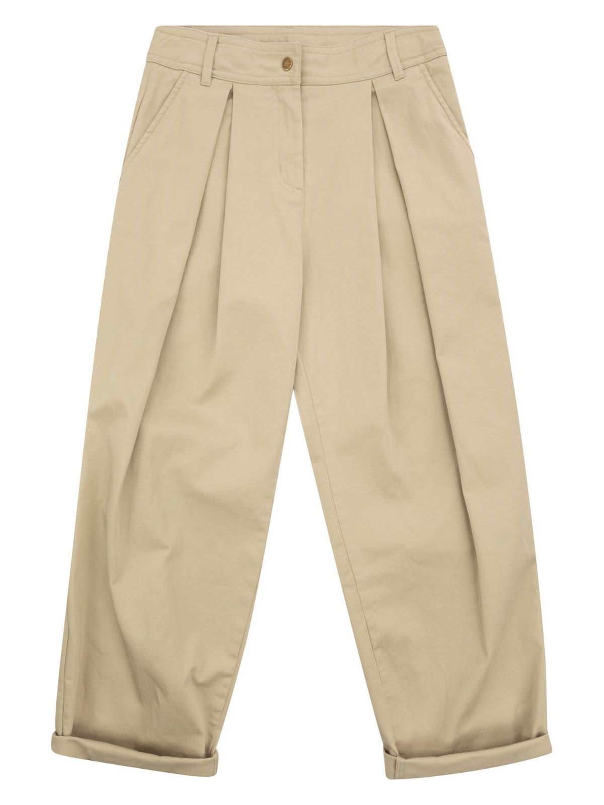 Moncler 키즈 플리츠 스트레치 코튼 가바딘 팬츠 56833