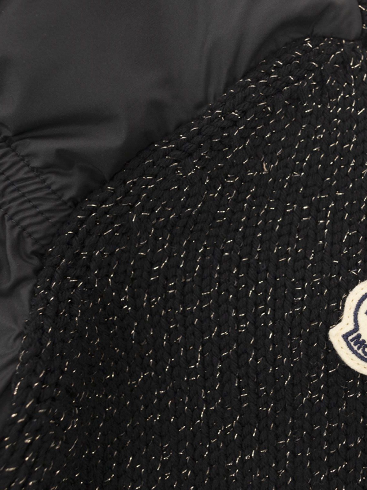 • 다양한 온도에서 착용하기 쉬운 이 울 카디건은 앞면의 페더 패딩이 특징입니다. 반짝이는 마감이 재미있는 터치를 더합니다.