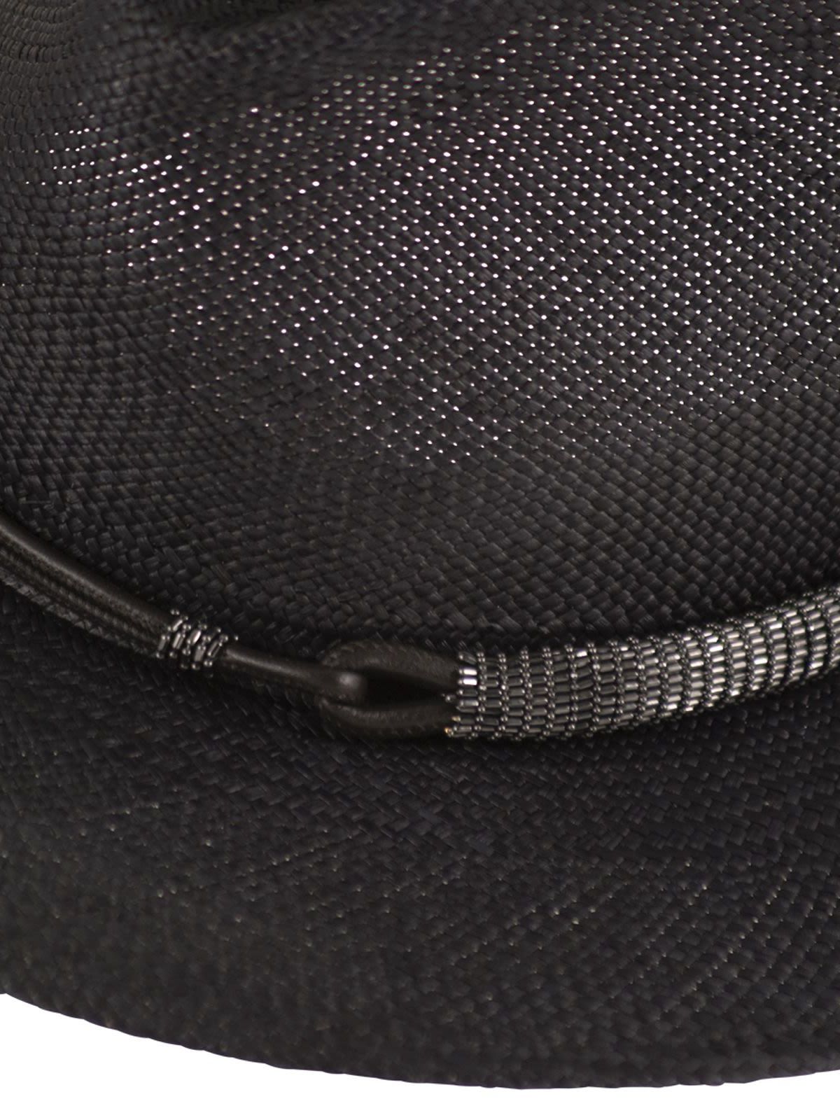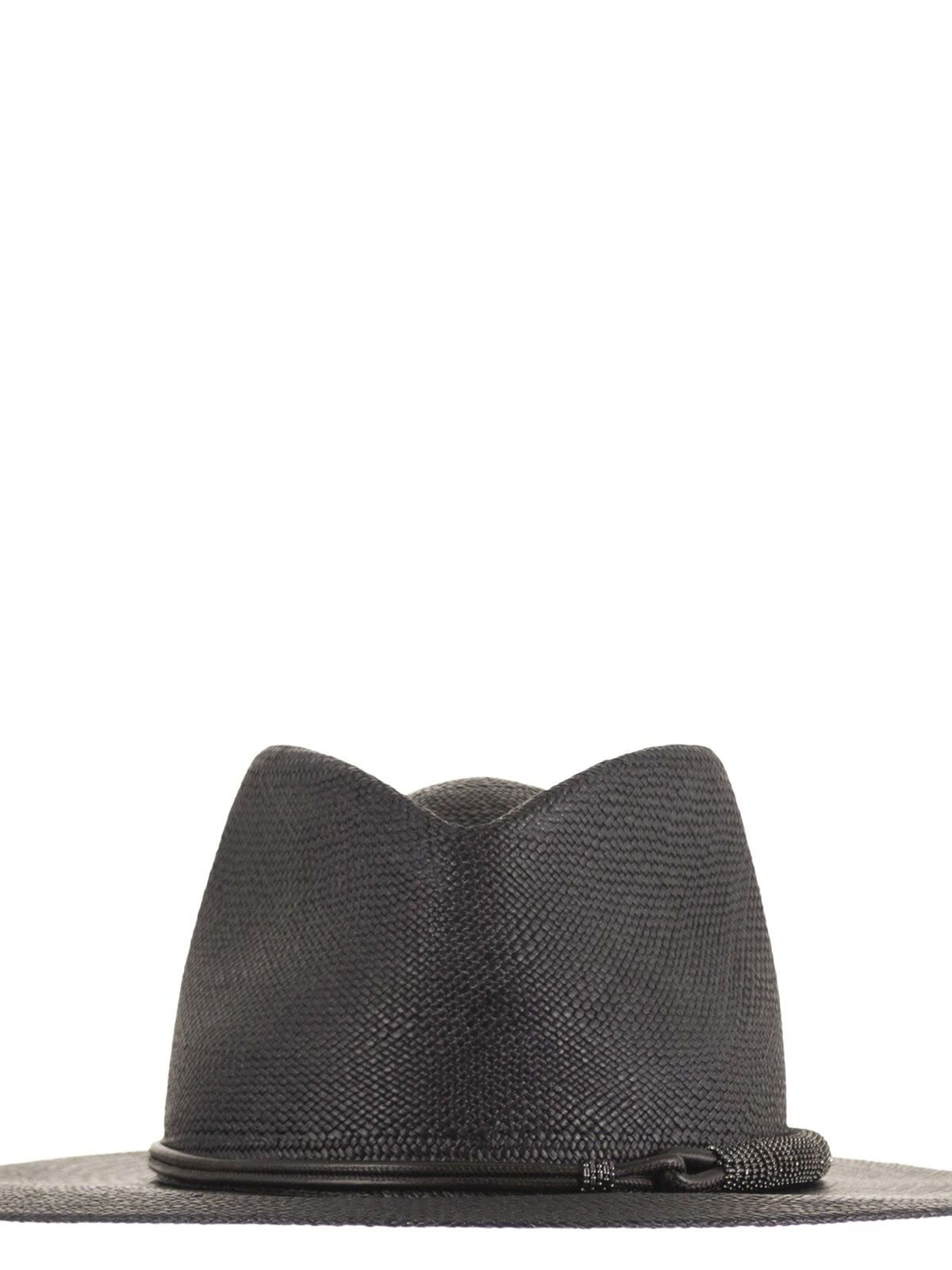 Brunello Cucinelli 우먼 프레셔스 레더 밴드 스트로 페도라 55780