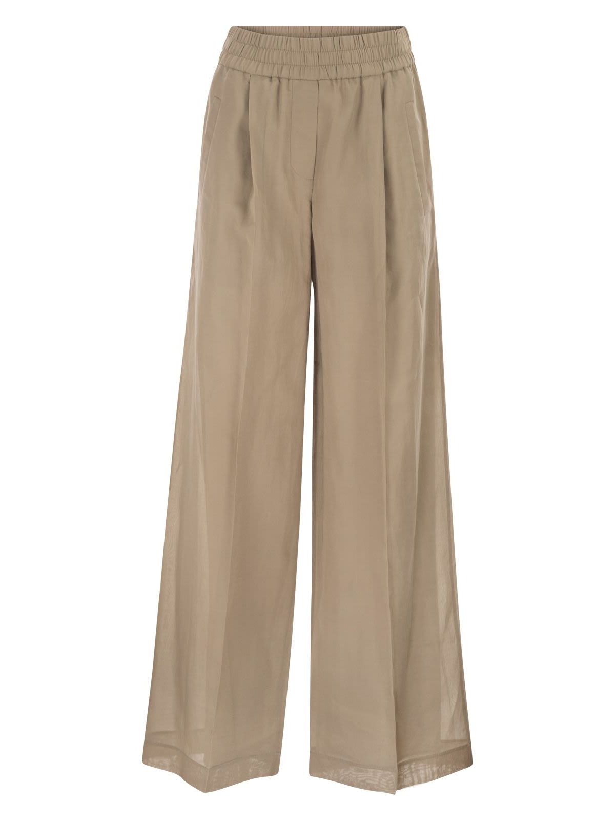 Brunello Cucinelli 우먼 코튼 오간자 루즈 트랙 팬츠 베이지 55741