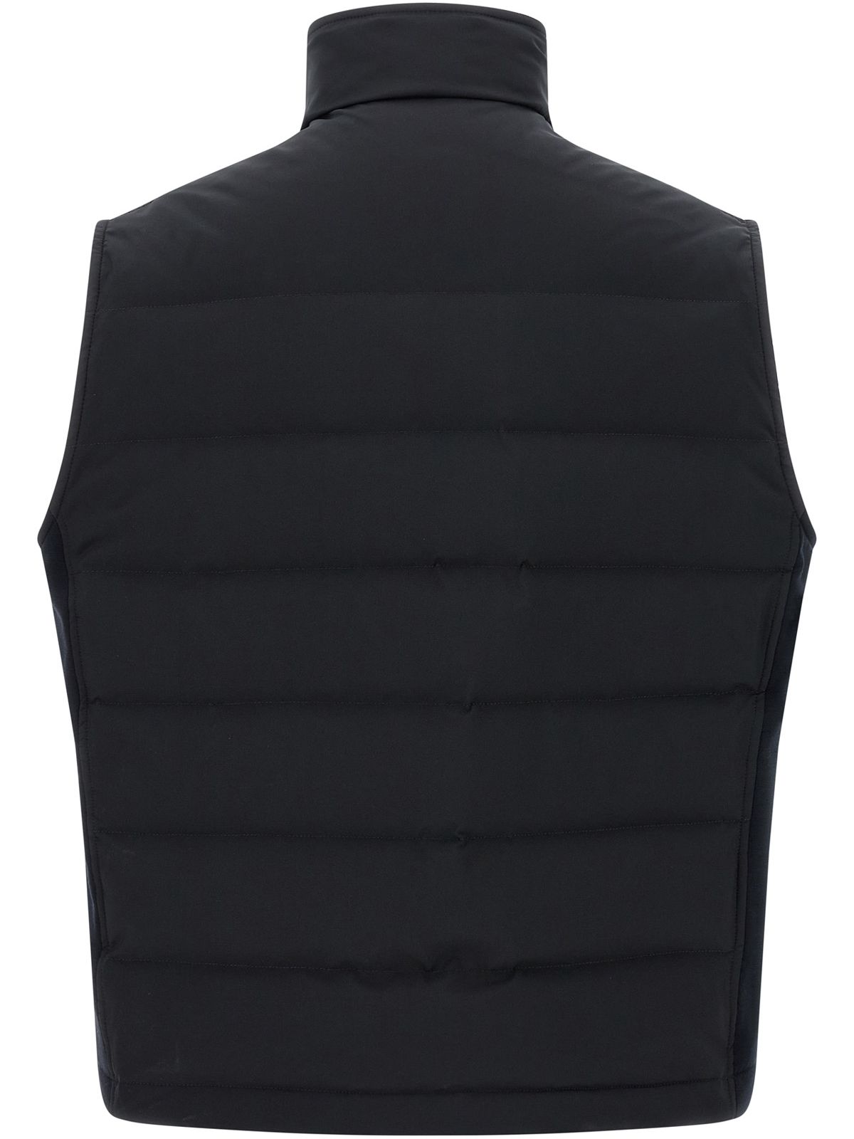 • 테크니컬 패브릭 소재의 '골프 캡슐' 베스트로, 측면에 톤온톤 스트레치 울과 캐시미어 블렌드 니트 인서트가 적용되었습니다.