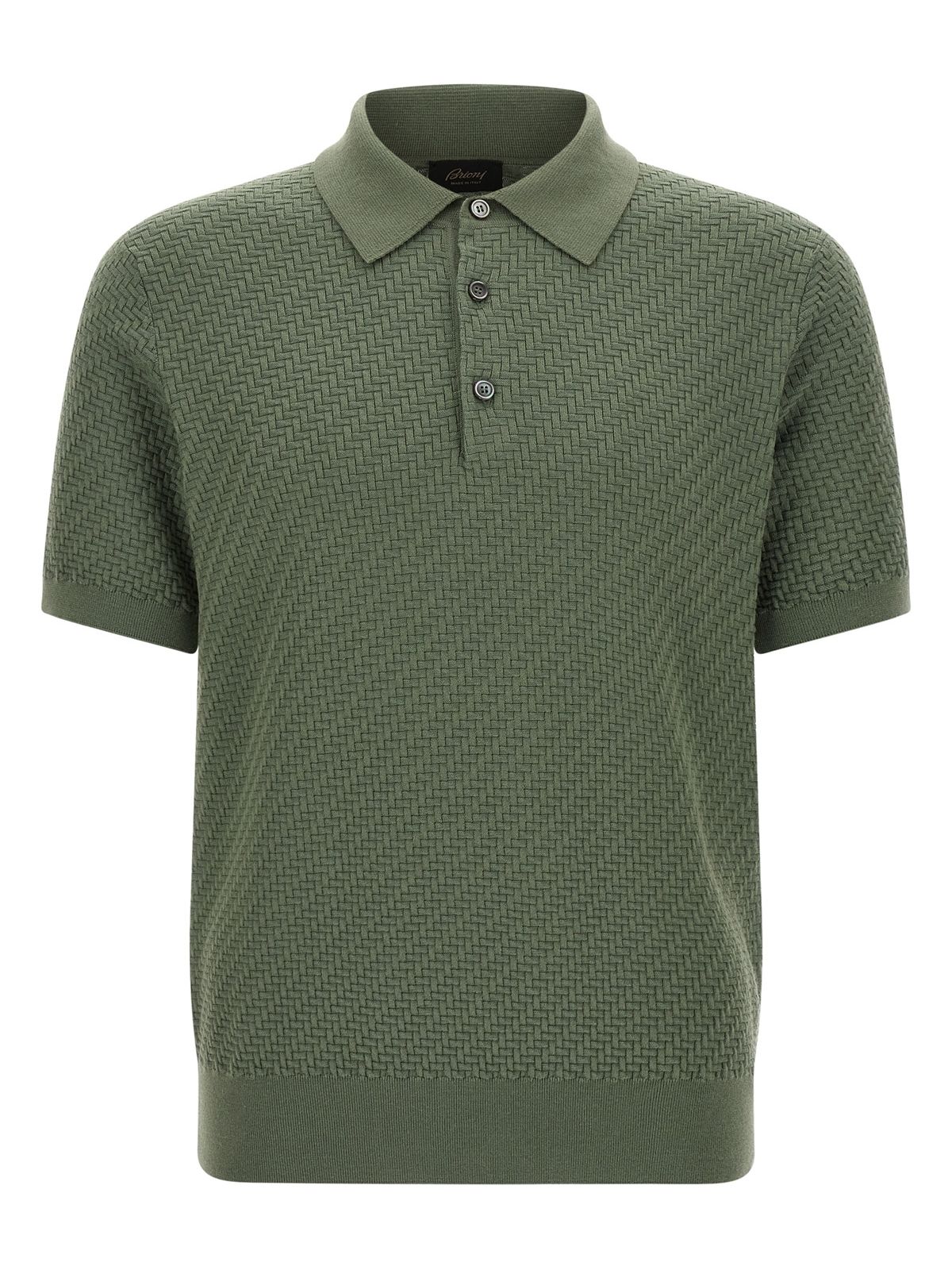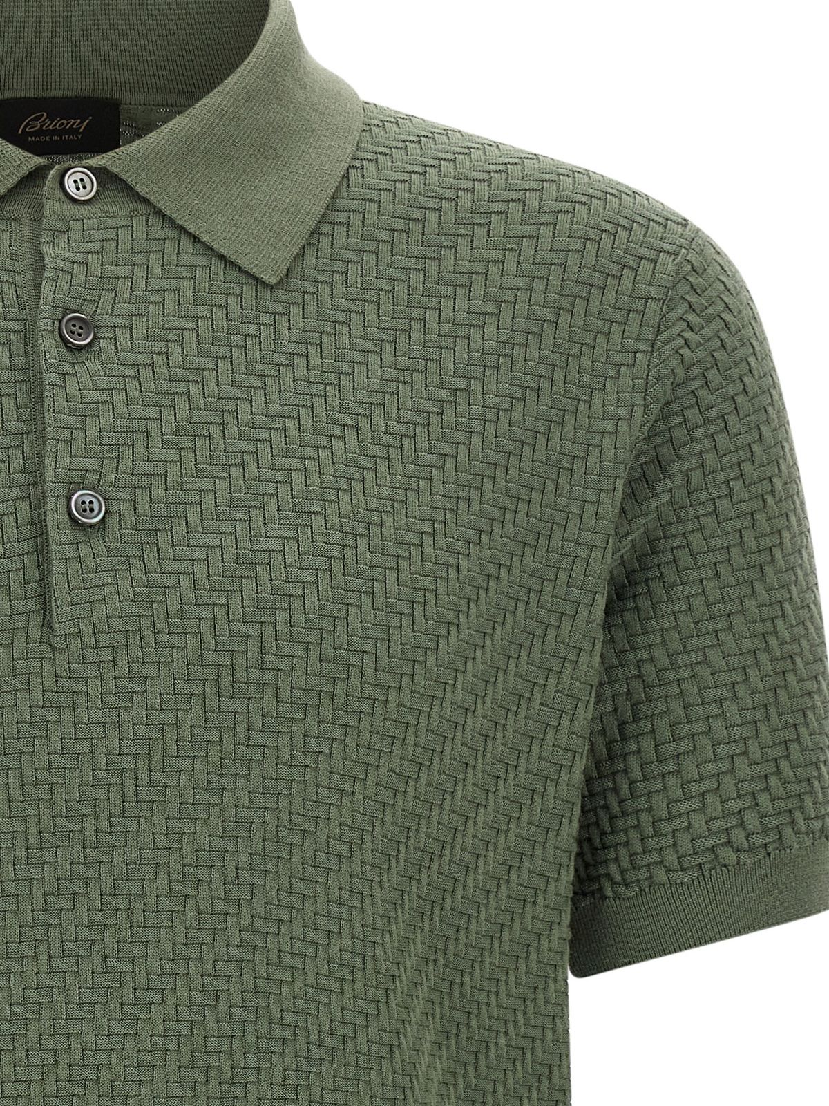 Brioni 그린 코튼 실크 캐시미어 블렌드 3D 텍스처 폴로 221600