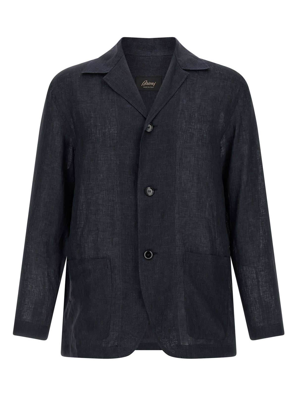 Brioni 블루 블레이저 스타일 린넨 셔츠 114100