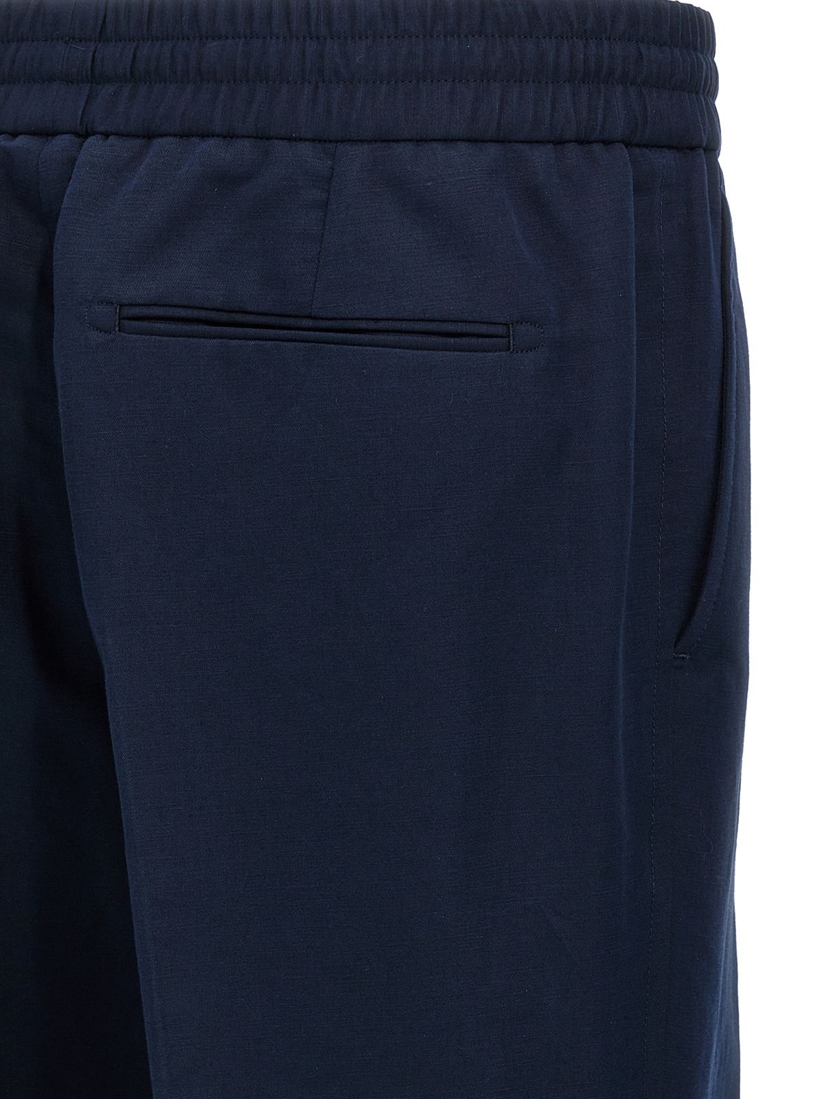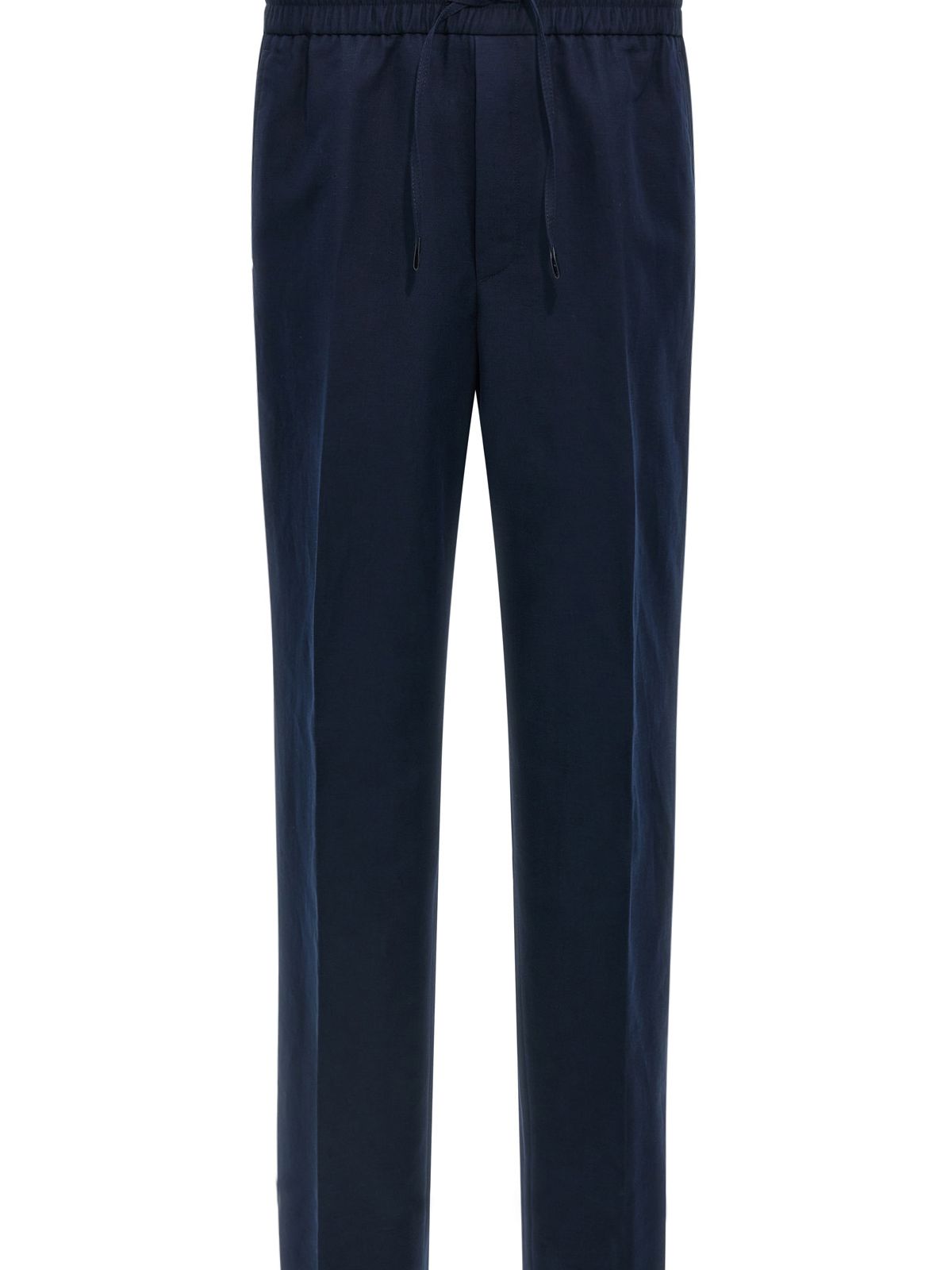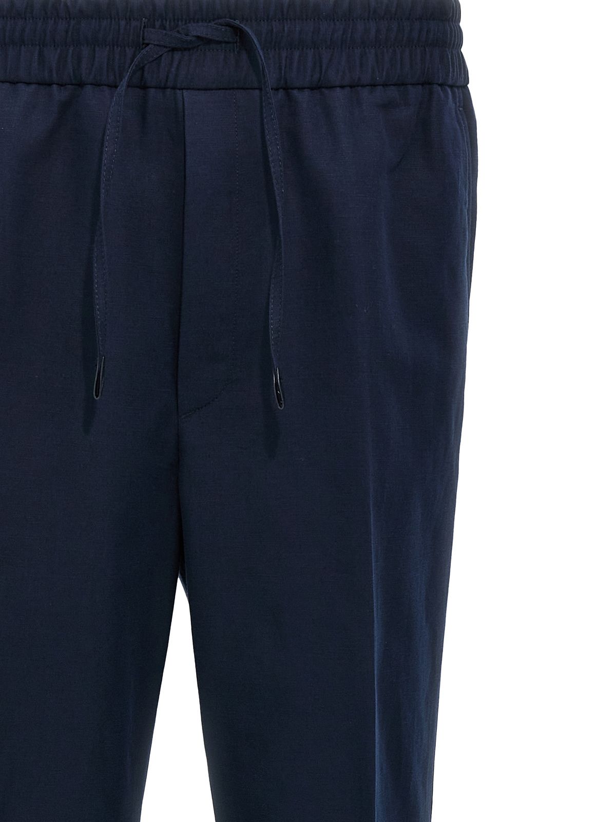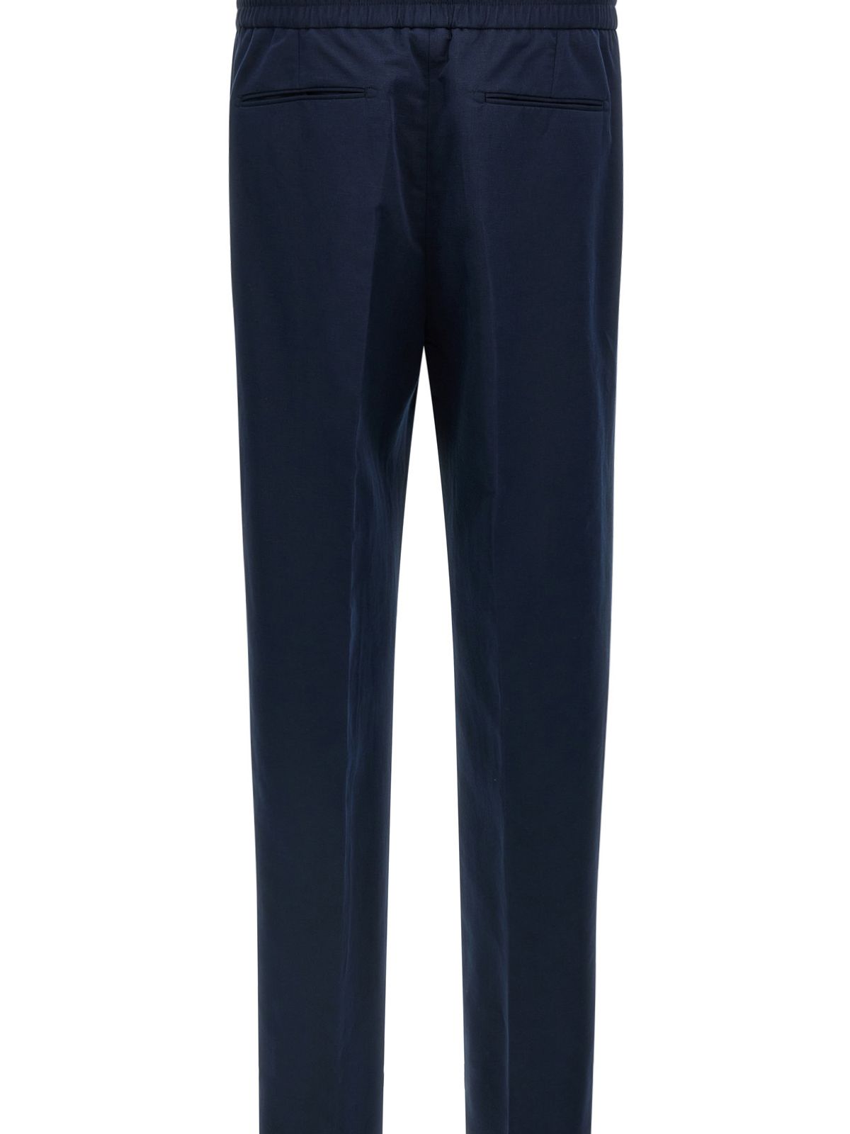 Brioni 블루 코튼 블렌드 리넨 드로우스트링 팬츠 064100