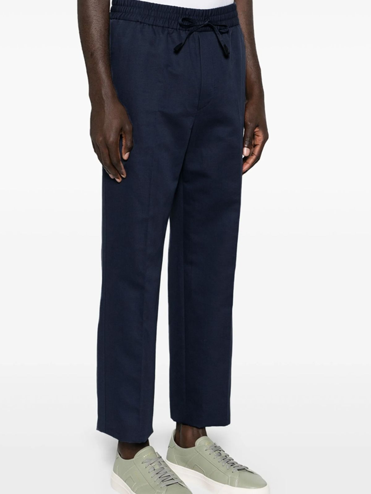 • 다리 부분에 대조 스티칭과 허리에 드로우스트링이 있는 '아솔로' 코튼 블렌드 리넨 팬츠입니다.