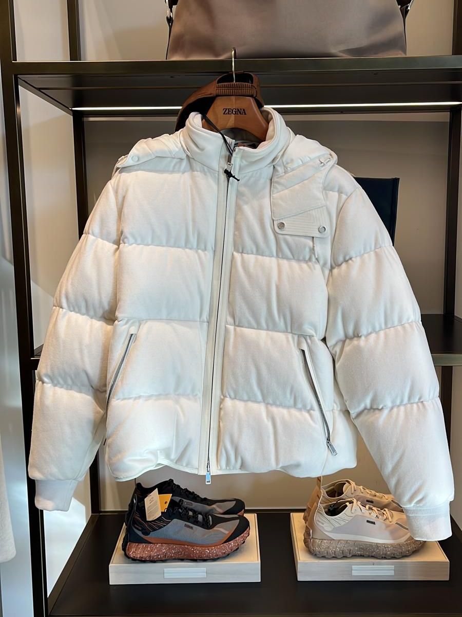 제냐 카멜 오아시 캐시미어 구스다운 후디드 자켓 2color